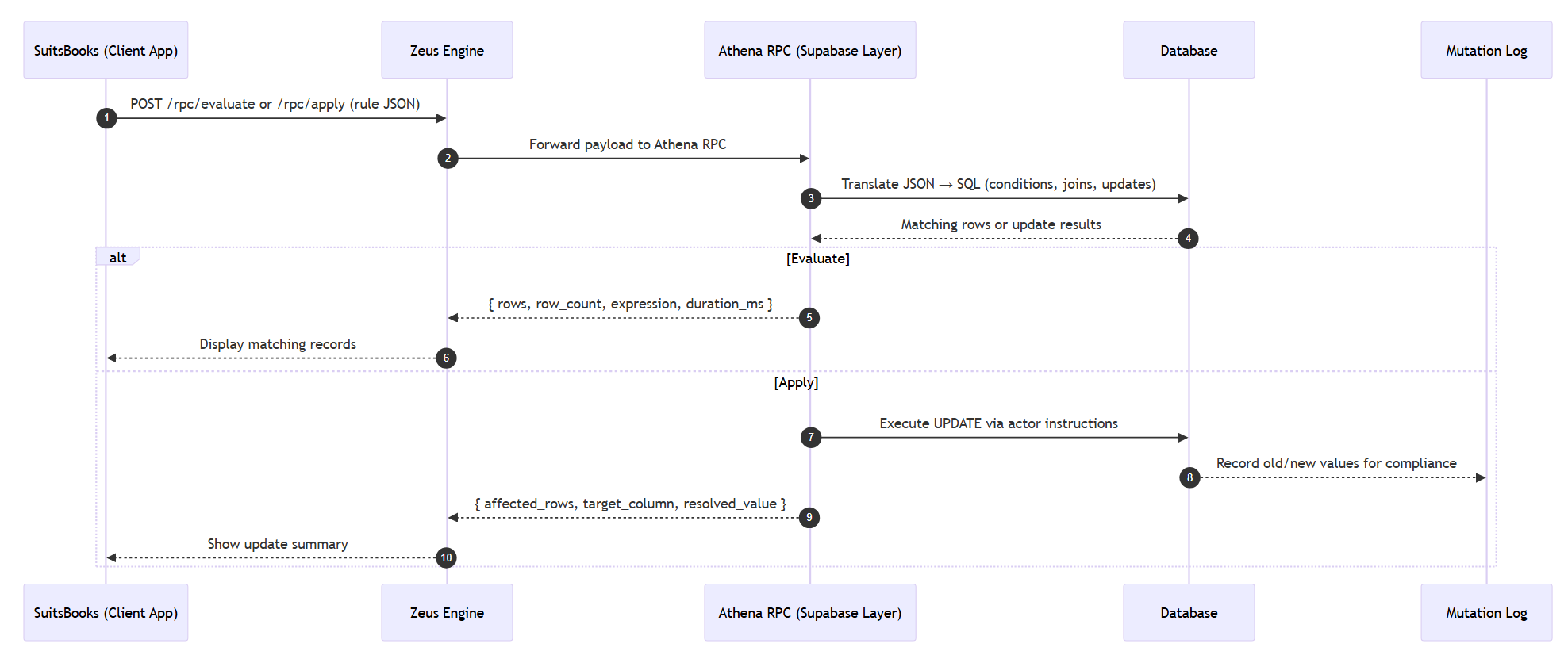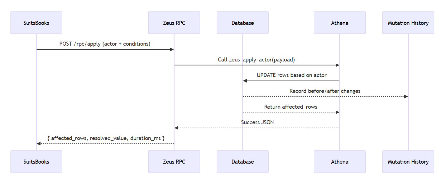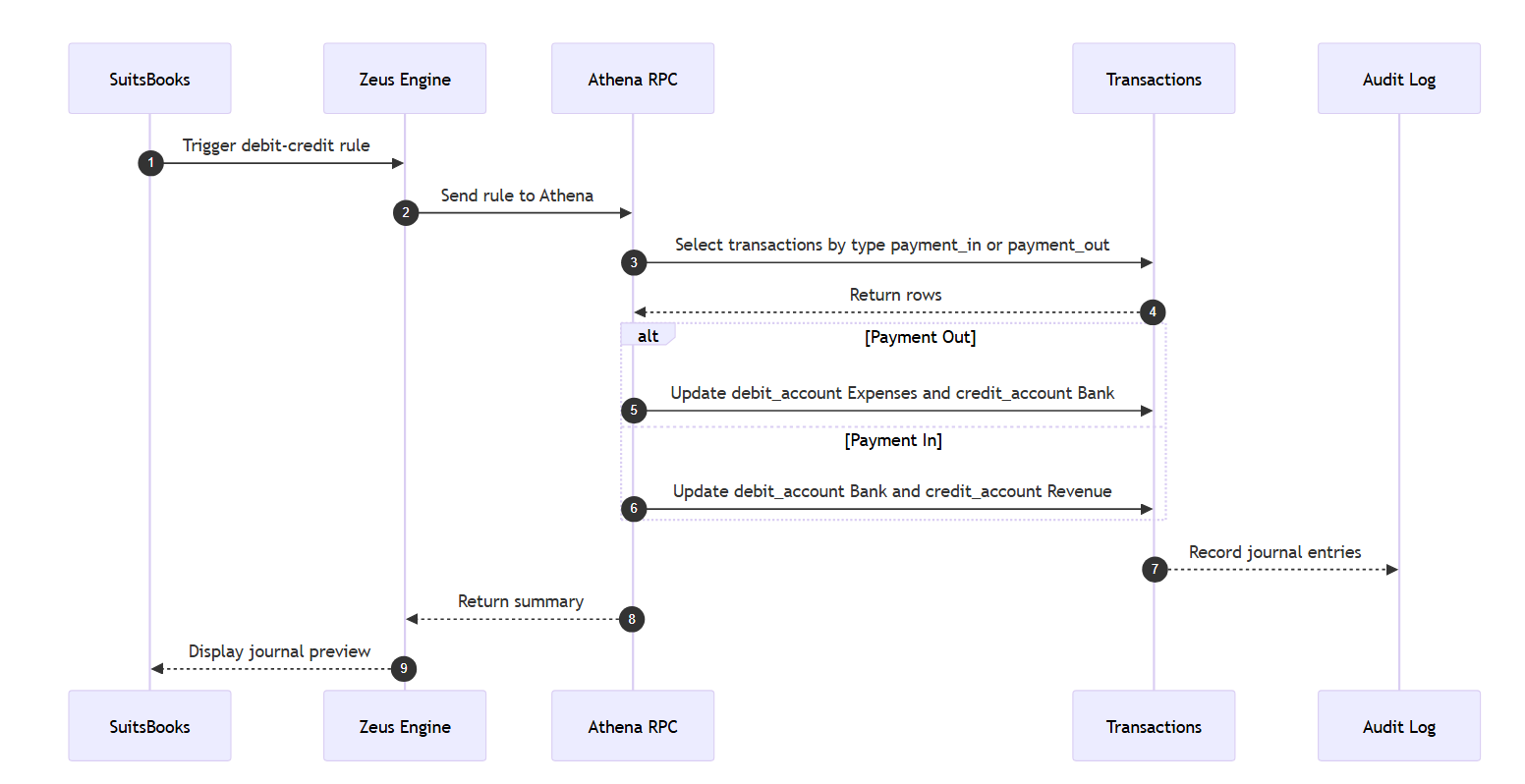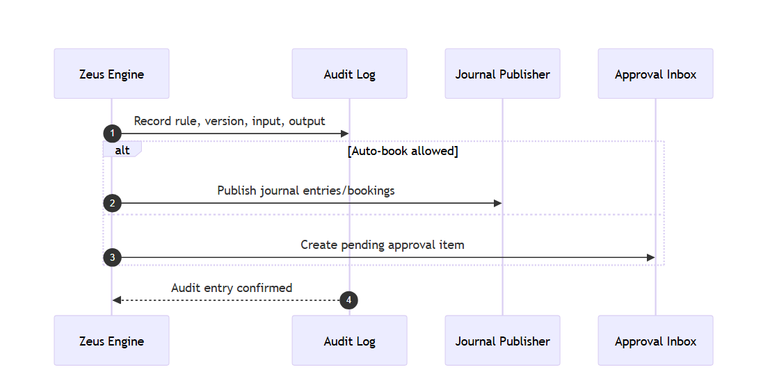 If re-run, Zeus checks audit history and reuses the same code — ensuring permanent ledger consistency.