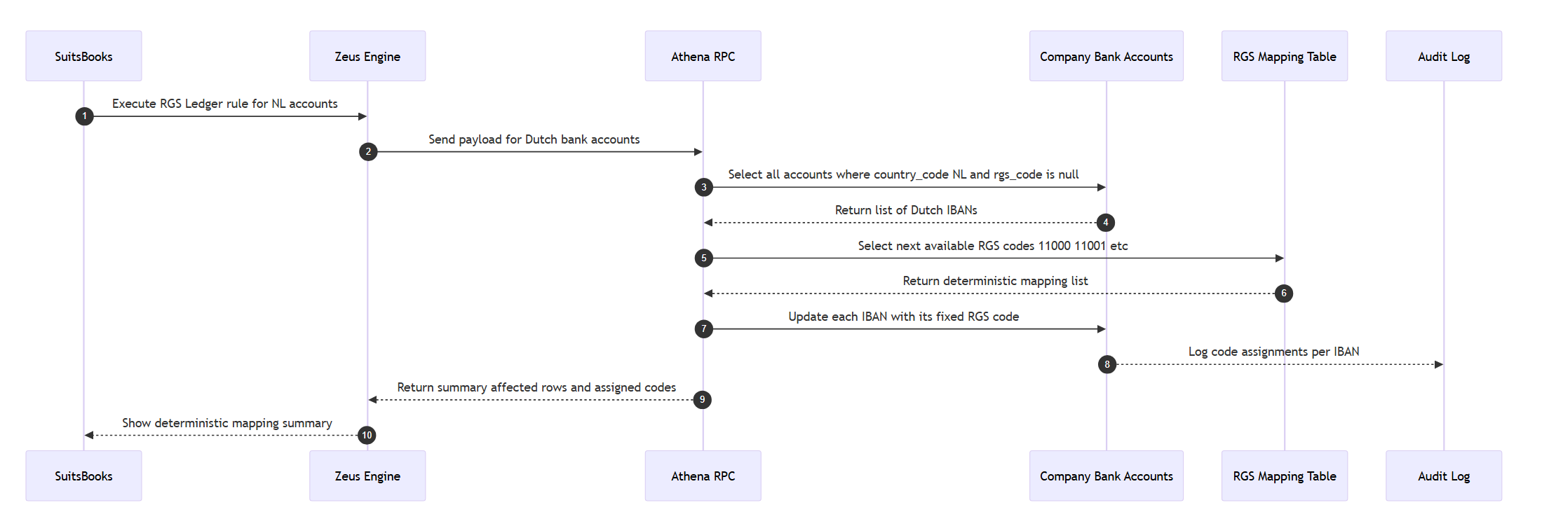 Goal: Ensure each Dutch bank account always maps to a unique, fixed RGS code ledger (e.g., 11000, 11001, etc.).