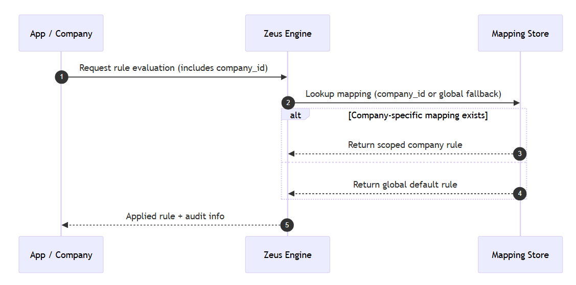 • If no company-specific mapping exists, Zeus falls back to global rules.
