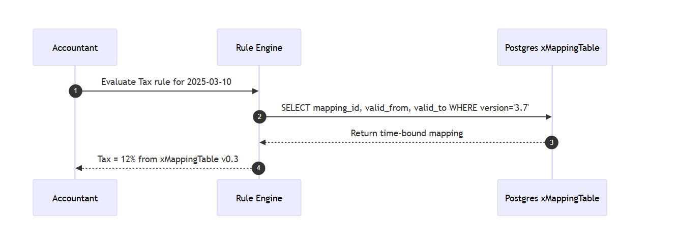• Each mapping version (v0.1 → v0.2 → v0.3) is time-bound, so changes in tax laws or logic don’t retroactively affect old data.